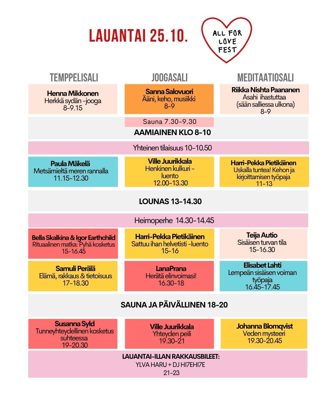 All for Love Fest päivälippu lauantai 25.10. (sisältää ohjelman klo 9:30 alkaen koko päivän ajan sekä lounaan ja päivällisen) Saatavilla rajattu määrä!