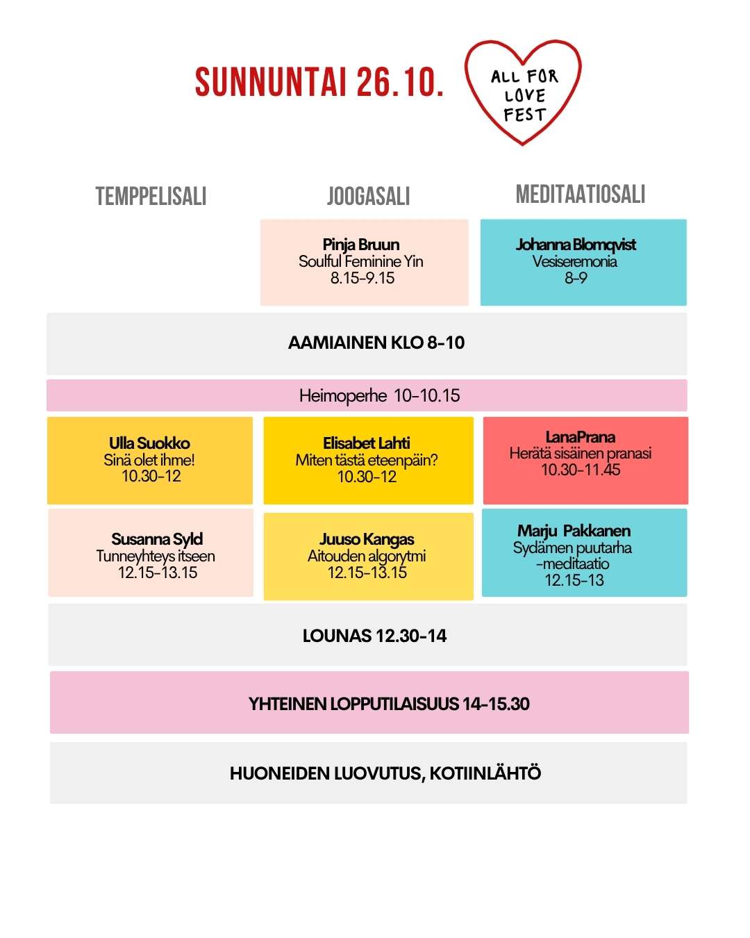 Festivaali alkaa pe 24.10. klo 17.30 ja päättyy su 26.10. klo 15.
